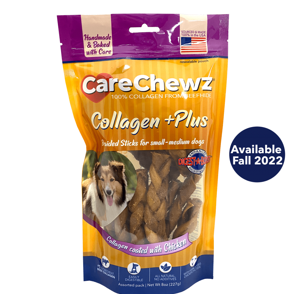 Another advantage of collagen chews is the dental benefit they bring. The act of chewing beefhide for a period of time freshens breath and cleans teeth. Your dog will have much less plaque and tartar buildup with a regiment of chews.
