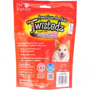 Pet Factory TWISTEDZ® American Beefhide Twist Sticks w/Pork Meat Wrap 20pk 5″